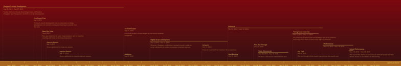 Script Refinement – Actors, designers and faculty work on Script development continued through rehearsals for approximately three weeks. 2-3 weeks before opening, the script was solidified with no major changes. Settling on the script provided stability for actors and the repetition required to integrate sound effects with acting in a consistent performance.